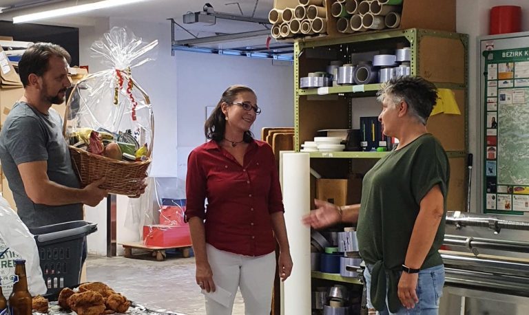 Nun nahm Renate Lackner mit einer kleinen Feier Abschied und geht neue Wege. Mit Angi Utschounig (Foto unten li., Renate Lackner re.) war sie jahrelang ein super Team im Siebdruck des Unternehmens. Mit kurzer Unterbrechung in den 90ern war Nimaro für Renate Lackner die zweite Heimat neben Villach, von wo sie täglich zur Arbeit kam.